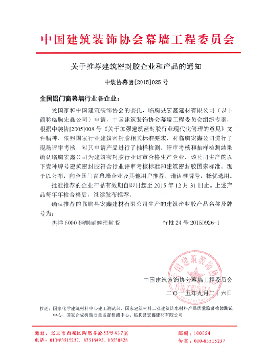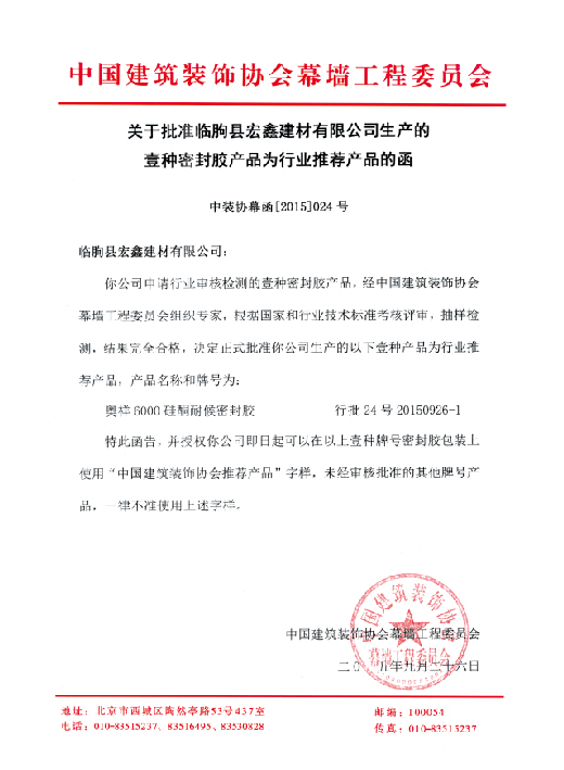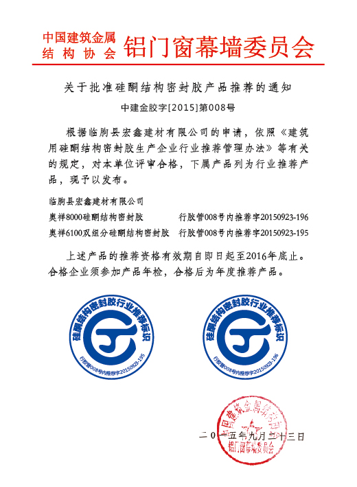 企業(yè)榮譽(yù)是可測(cè)量的品牌口碑指標(biāo)。公司成立于2004年,是山東省最早生產(chǎn)硅酮密封膠的企業(yè)之一,公司在成立的近20年時(shí)間里不斷地積累經(jīng)驗(yàn),開(kāi)拓創(chuàng)新,采用先進(jìn)的設(shè)備,精湛的技藝,嚴(yán)格的要求,精益求精,在硅酮密封膠的生產(chǎn)和研發(fā)領(lǐng)域取得了很多的成就,得到了政府部門(mén)和相關(guān)行業(yè)專(zhuān)業(yè)機(jī)構(gòu)的認(rèn)可,取得了“國(guó)家建筑用硅酮結(jié)構(gòu)密封膠生產(chǎn)認(rèn)定企業(yè)”的榮譽(yù)稱(chēng)號(hào)。